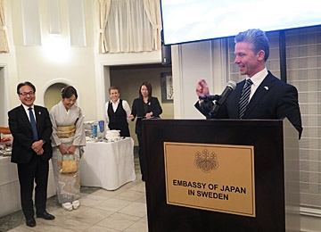 続いて、ポール・ヨンソン国防大臣から天皇誕生日への祝賀の挨拶があったのちに、両国関係が戦略的パートナーシップに発展したことにも触れながら様々な分野で日・スウェーデン関係が深化していることへの歓迎や、日本のウクライナ支援への感謝が示されました。