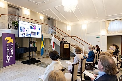 10月15日、在スウェーデン日本国大使館は、シルヴィア王妃陛下ご臨席のもと、大使公邸において、「アルツハイマー若手研究者シルヴィア王妃陛下賞」の授賞式及び記念レセプションをスウェーデン・アルツハイマー財団と合同で開催しました。