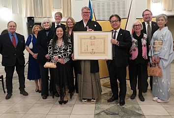グンナル・儘盟・リンデル ストックホルム大学准教授兼尺八奏者に勲章を授与