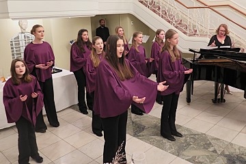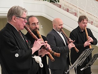 式典に続くレセプションでは、リンデル准教授を含む尺八演奏家の皆様(クリストフ・歌盟・ガストン氏、イェラシモス・精盟・ディモヴァシリス氏、ロケーシャ・ハーベル氏)による尺八の演奏に加え、合唱団による日本歌曲を含むパフォーマンスが行われ、グンナル准教授のこれまでの功績を振り返るとともに、日本文化の魅力を味わう機会となりました。