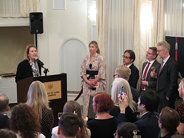 在スウェーデン日本国大使館は、昨年11月、フリーダ・ロンゲ氏がスウェーデン初の「日本食普及の親善大使」として任命されたことを記念し、3月2日、大使公邸にて任命祝賀レセプションを開催しました。
