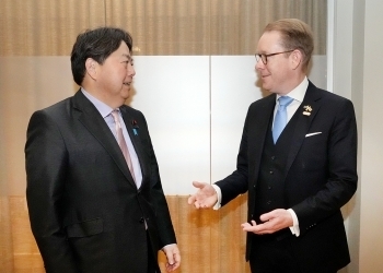 - De båda ministrarna bekräftade att likasinnade länder kommer att fortsätta att stå enade i sitt svar på Rysslands aggression mot Ukraina. Dessutom utbytte de två ministrarna åsikter om regionala frågor, till exempel Kina, och om hur Nordkorea ska bemötas beträffande kärnvapen- och missilrelaterade frågor samt kidnappningsfrågan.