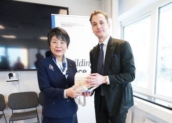 Minister KAMIKAWA utbytte åsikter med Per Olsson Fridh, generaldirektör för Folke Bernadotteakademin (FBA) med flera om fredsbyggande, exempelvis inom området kvinnor, fred och säkerhet (WPS).