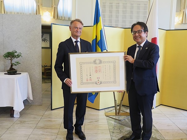 トシュテン・リーマン元スウェーデン盆栽協会会長に勲章を授与 (令和7年8月28日) 額賀衆議院議長の当地親善訪問 (令和7年7月27日~28日) カール16世グスタフ国王陛下の大阪・関西万博訪問(令和7年5月13日) 大阪・関西万博開幕記念及び日本食普及レセプションの開催 (令和7年3月3日) 【お知らせ】 システムの定期メンテナンス システムの定期メンテナンスに伴う旅券オンライン申請等の御利用一時停止について 【お知らせ】 海外安全対策セミナー ストックホルムにおける海外安全対策セミナーの開催について(令和7年11月23日(日曜日)) 令和7年度領事出張サービス(下半期)の実施について ヨーテボリ領事出張サービスのご案内 (令和7年11月15日(土曜日)) マルメ領事出張サービスのご案内 (令和7年11月29日(土曜日)) お知らせ 閉じる トシュテン・リーマン元スウェーデン盆栽協会会長に勲章を授与 (令和7年8月28日) 令和7年度外務大臣表彰の公表 (令和7年8月28日) 額賀衆議院議長の当地親善訪問 (令和7年7月27日~28日) 令和7年春の外国人叙勲 (令和7年4月29日) 大阪・関西万博開幕記念及び日本食普及レセプションの開催 (令和7年3月3日) 天皇誕生日祝賀レセプションの開催 (令和7年2月20日) 第9回スウェーデン学生日本語弁論大会の開催 (令和7年2月15日) 水越大使のダーラナ県、レトビック市及びレクサンド市訪問 (令和7年2月12日~13日) クリステション首相の訪日時における日・スウェーデン首脳会談 (令和6年12月4日) 水越大使の国王陛下への信任状捧呈 (令和6年11月14日) 日・スウェーデン首脳会談 (令和6年7月10日) 領事新着情報 閉じる 令和7年度領事出張サービス(下半期)の実施について [120KB] 狂犬病抗体価検査施設の一部変更について(日本へ犬等を輸入される皆様へ) 在留状況確認メールの配信について パスポート更新の案内メール配信開始について システムの定期メンテナンスによる旅券オンライン申請等の御利用一時停止ついて 戸籍に氏名の振り仮名が記載 電子化した証明書(e-証明書)の発給開始について 海外に居住する百歳以上高齢者調査について [86KB] 消費税免税制度における別送の取扱い廃止のお知らせ 戸籍電子証明書提供用識別符号の利用開始について(2025年3月24日 以降) 旅券の集中作成開始(2025年3月24日以降)に伴う留意事項について 安全の手引き(在スウェーデン日本国大使館 2025年2月) [769KB] 【スウェーデンへの旅行等を検討中の方】スウェーデンの入国条件について その他 閉じる 日本に在留しているウクライナのみなさんへ | 出入国在留管理庁 (moj.go.jp) 在瑞日本関連団体(スウェーデン日本人会・商工会等のご案内) 対日直接投資推進担当窓口のご案内 令和6年能登半島地震に関する義援金受入れ口座の開設について 首相官邸 外交政策 竹島問題及び日本海呼称問題に関する情報提供 「ユース非核特使」名称使用(許可申請)について アーカイヴ 閉じる 2025新着情報 2024新着情報 2023新着情報 2022新着情報 2021新着情報 2020新着情報 2015–2019新着情報 2009–2014新着情報 基本情報 Embassy of Japan in Sweden Gärdesgatan 10SE-115 27 StockholmSWEDEN Tel: +46-8-5793-5300 開館時間 SNS 閉じる 外務省公式