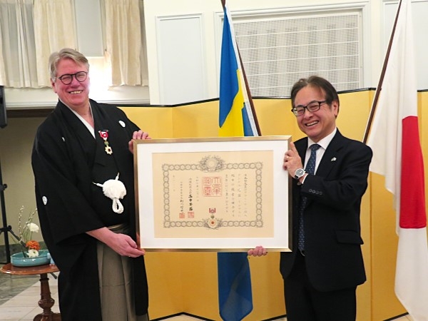 スウェーデン初の日本食普及の親善大使任命祝賀レセプション開催 (令和8年3月2日) 天皇誕生日祝賀レセプションの開催 (令和8年2月19日) グンナル・儘盟・リンデル ストックホルム大学准教授兼尺八奏者に勲章を授与 (令和8年2月10日) ルギッタ・ヘンリーケス・ノールマルク前王立科学アカデミー会長に勲章を授与 (令和8年2月2日) 令和8年新年祝賀会の開催 (令和8年1月23日) 水越大使主催ノーベル賞祝賀レセプション (令和7年12月9日) お知らせ 閉じる スウェーデン初の日本食普及の親善大使任命祝賀レセプション開催 (令和8年3月2日) 天皇誕生日祝賀レセプションの開催 (令和8年2月19日) グンナル・儘盟・リンデル ストックホルム大学准教授兼尺八奏者に勲章を授与 (令和8年2月10日) ビルギッタ・ヘンリーケス・ノールマルク前王立科学アカデミー会長に勲章を授与 (令和8年2月2日) 令和8年新年祝賀会の開催 (令和8年1月23日) フリーダ・ロンゲ氏がスウェーデンの「日本食普及の親善大使」に任命されました (令和7年12月15日) 水越大使主催ノーベル賞祝賀レセプション (令和7年12月9日) 領事新着情報 閉じる 令和8年度領事手数料に関するお知らせ [94KB] 電子化した証明書(e-証明書)の発給対象となる証明書の拡大について 令和7年度海外安全対策セミナーの開催について (令和7年11月23日) 日本国外の金融機関で年金を受け取っている方への年金支払いに関する手続きについて 狂犬病抗体価検査施設の一部変更について(日本へ犬等を輸入される皆様へ) 在留状況確認メールの配信について パスポート更新の案内メール配信開始について 戸籍に氏名の振り仮名が記載 電子化した証明書(e-証明書)の発給開始について 海外に居住する百歳以上高齢者調査について [86KB] 消費税免税制度における別送の取扱い廃止のお知らせ その他 閉じる 日本に在留しているウクライナのみなさんへ | 出入国在留管理庁 (moj.go.jp) 在瑞日本関連団体(スウェーデン日本人会・商工会等のご案内) 対日直接投資推進担当窓口のご案内 令和6年能登半島地震に関する義援金受入れ口座の開設について 首相官邸 外交政策 竹島問題及び日本海呼称問題に関する情報提供 「ユース非核特使」名称使用(許可申請)について アーカイヴ 閉じる 2026新着情報 2025新着情報 2024新着情報 2023新着情報 2022新着情報 2021新着情報 2020新着情報 2015–2019新着情報 2009–2014新着情報 基本情報 Embassy of Japan in Sweden Gärdesgatan 10SE-115 27 StockholmSWEDEN Tel: +46-8-5793-5300 開館時間 SNS 閉じる 外務省公式